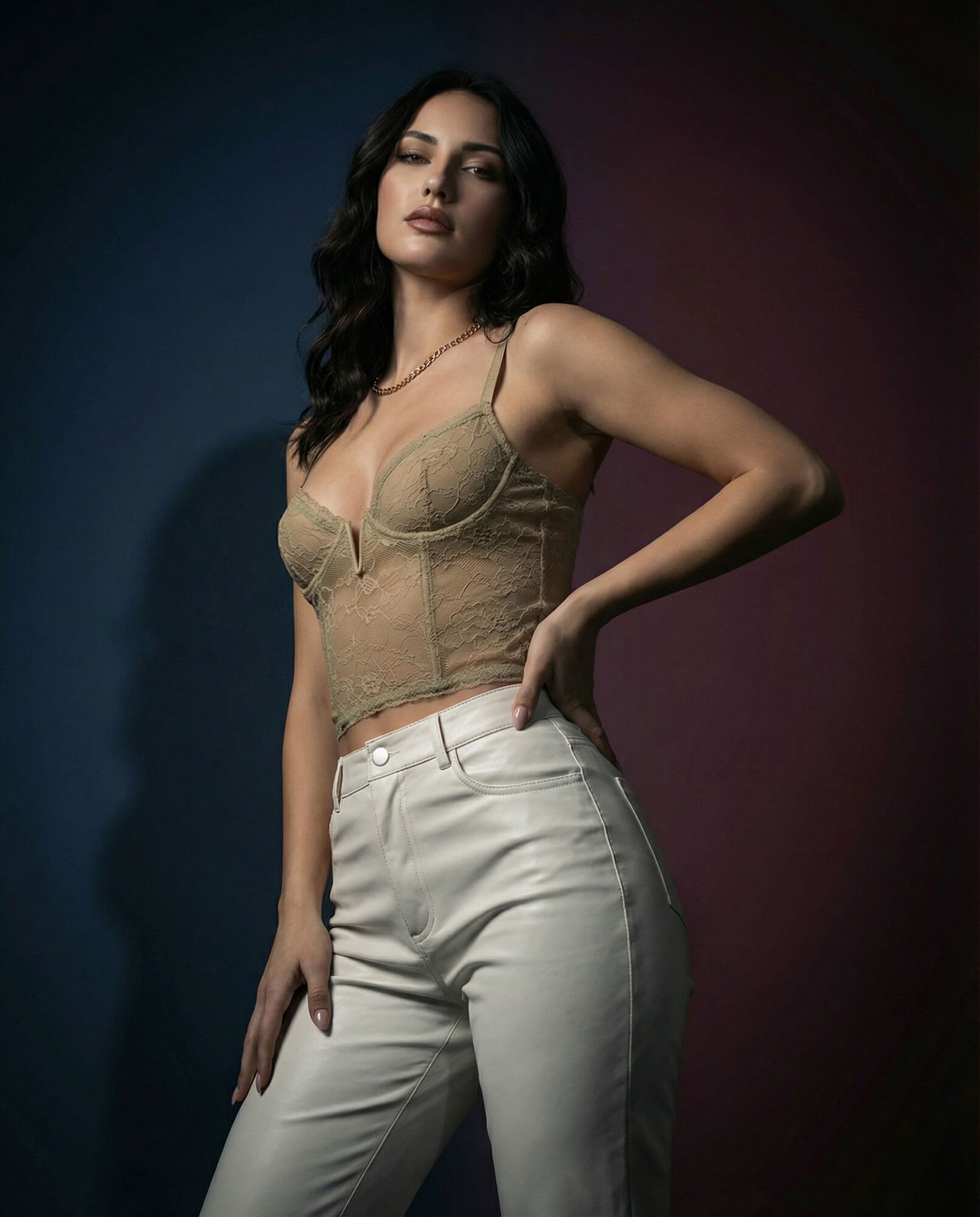 The lighting setup uses a muted, dual-tone background to isolate the subject and highlight the contours of the garments without distraction. Poses remain minimal and stable, allowing the craftsmanship of each piece to stay at the center of the frame. The overall aesthetic is polished, restrained, and modern, designed to present the collection with clarity and precision for brand portfolios, editorials, and commercial use.